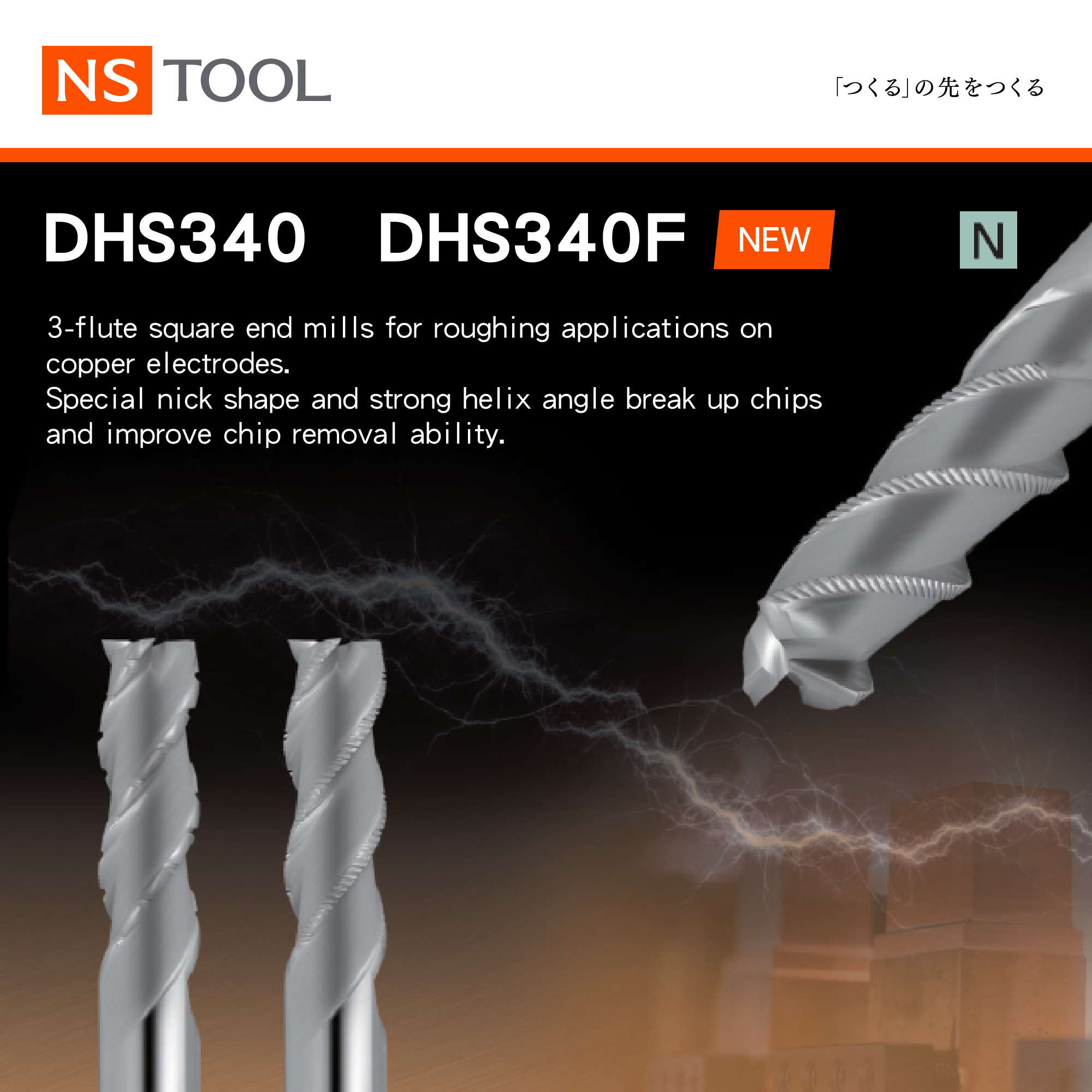 NEW!!! NS TOOL 電級銅加工用粗齒型.細齒型立銑刀 DHS340・DHS340F